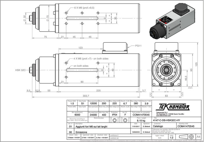 The electrospindle 4147 SERIES are designed to generate high power with a limited overall dimensions. These characteristics, combined with the high rotational speed, making them ideal for use on machines for working wood, aluminum and PVC. 4147 SERIES: for a 12,000 rpm to 24,000 rpm when the load is radial and axial.